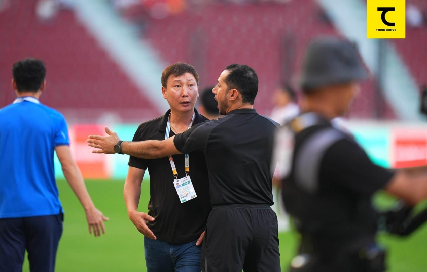 Ngay lập tức, HLV Kim Sang Sik đã lao tới phía trọng tài biên và phản ứng dữ dội. Hành động của ông nhận được sự chú ý từ ống kính máy quay. Theo đó, ông thầy người Hàn nỗ lực giải thích với trọng tài rằng bàn thắng của Đình Bắc là hợp lệ.