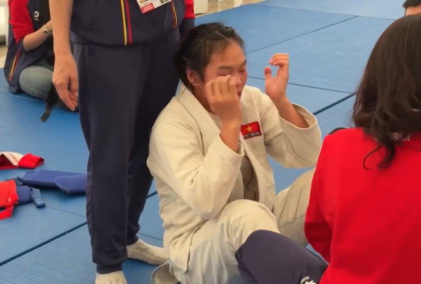 Để thua trước VĐV nước chủ nhà ở trận chung kết đối kháng nữ hạng 52kg, nhà ĐKVĐ thế giới Phùng Mùi Nhình không giấu được nỗi buồn.