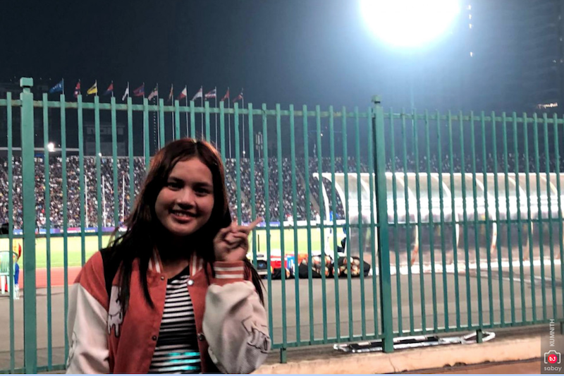 Cô gái trẻ tên là Mimi, khoảng 20 tuổi đến từ tỉnh Takeo. Mimi cho biết, cô là một fan hâm mộ bóng đá cuồng nhiệt nên quyết định đến xem trận đấu giữa đội tuyển U22 Campuchia và Đông Timor. Tuy vậy, vào ngày thi đấu, Mimi lại bận dạy học và không kịp xin phép, nên không thể chuẩn bị đi cổ vũ đúng như dự kiến.