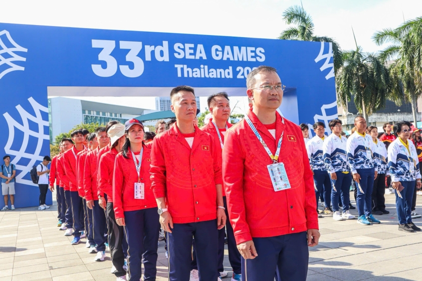 Chiều 8/12, Lễ thượng cờ Đoàn Thể thao Việt Nam và các đoàn tham dự Đại hội Thể thao lớn nhất khu vực Đông Nam Á - SEA Games 33 tại Bangkok đã được tổ chức tại nhà thi đấu trong Hua Mark Indoor Stadium.