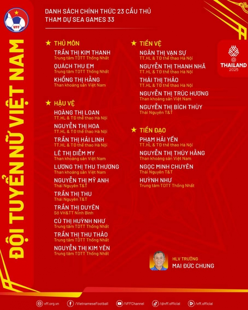 Danh sách 23 tuyển thủ nữ Việt Nam dự SEA Games 2025 nhanh chóng trở thành chủ đề nóng trên mạng xã hội Đông Nam Á, nơi người hâm mộ đưa ra nhiều nhận định về sức mạnh của đội.