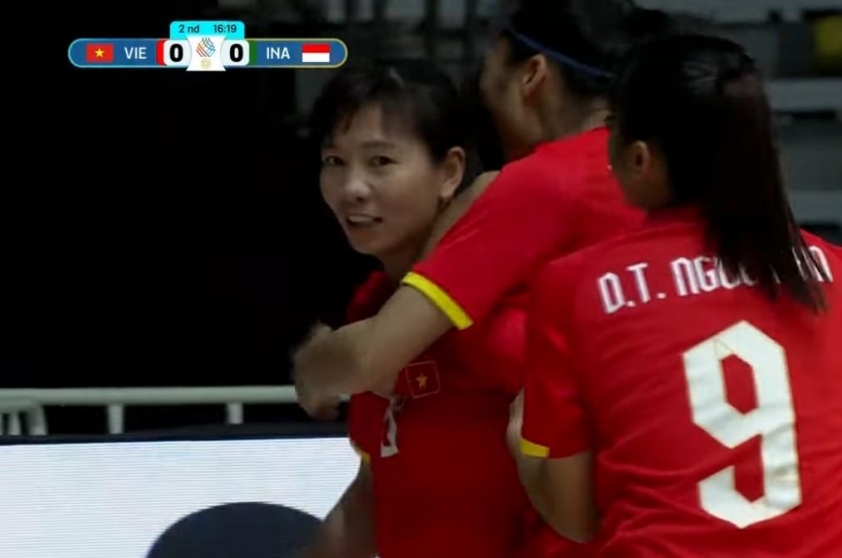 Bước sang hiệp 2, ĐT Futsal nữ Việt Nam nhanh chóng chiếm thế chủ động. Chỉ sau 4 phút, Thùy Trang nhận bóng từ giữa sân, đi bóng vượt qua ba cầu thủ Indonesia và dễ dàng ghi bàn mở tỷ số 1-0 vào khung thành trống.