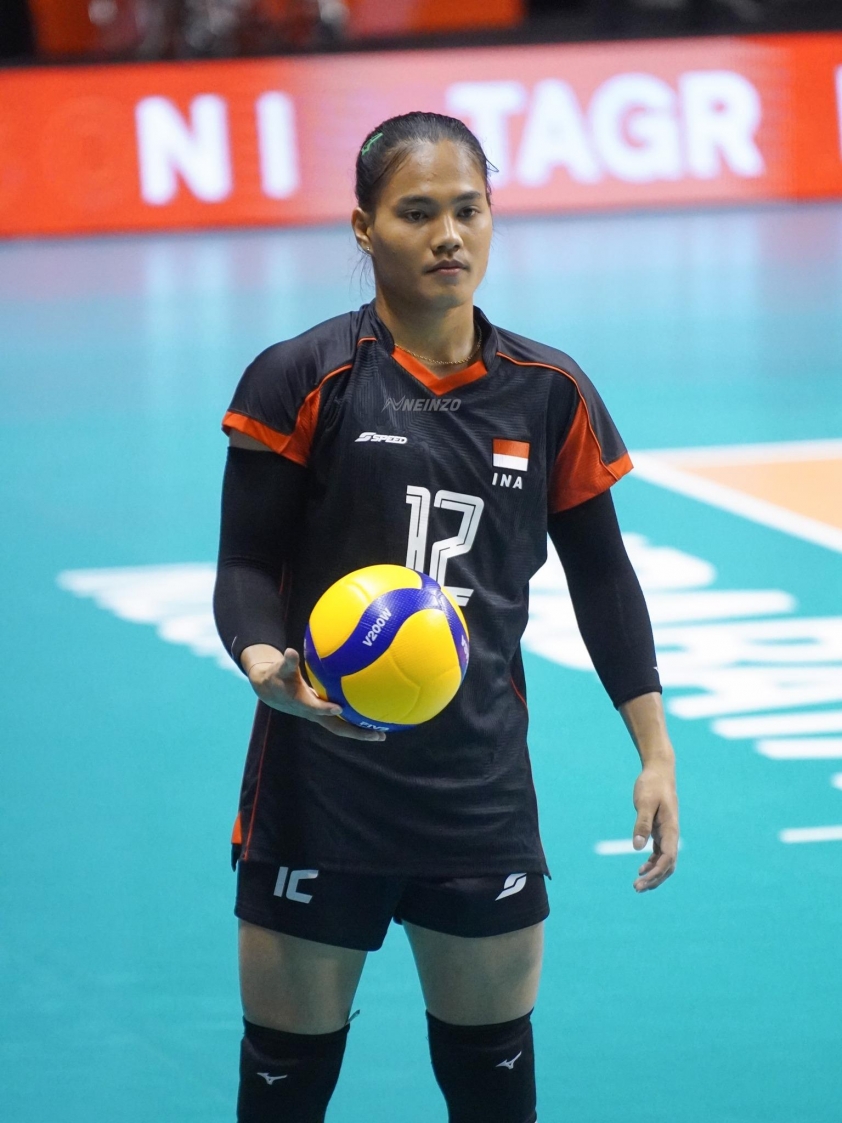 Megawati Hangestri Pertiwi - đối chuyền top đầu Đông Nam Á vẫn sẽ là ngôi sao dẫn dắt Indonesia tại SEA Games 33, bên cạnh kinh nghiệm của Mediol Yoku hay Yolana Betha Pangestika.