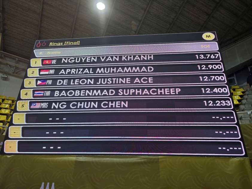 Tuyển thủ thể dục dụng cụ (TDDC) Nguyễn Văn Khánh Phong xuất sắc mang về tấm HCV thứ 9 cho đoàn thể thao Việt Nam tại SEA Games 33 với màn thể hiện ấn tượng ở nội dung vòng treo.