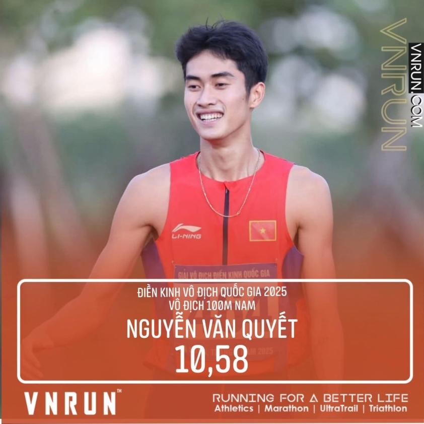 Nguyễn Văn Quyết, chàng trai sinh năm 2003 của điền kinh Hà Nội, gây bất ngờ khi giành HCV 100m nam quốc gia 2025 với thành tích 10 giây 58, mở ra hy vọng mới cho Thủ đô.