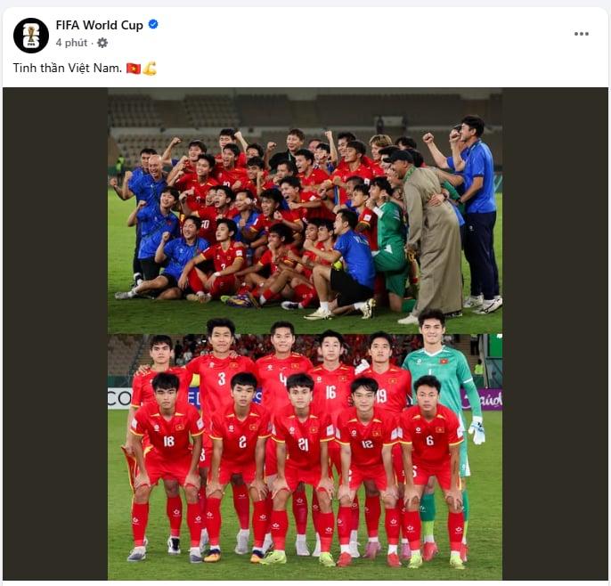 Ngay sau trận đấu, hình ảnh U23 Việt Nam chiến đấu quả cảm đã nhận được sự chú ý đặc biệt từ cộng đồng bóng đá quốc tế. Trên các nền tảng mạng xã hội chính thức, FIFA đã đăng tải dòng trạng thái ngắn gọn nhưng đầy ý nghĩa: “Tinh thần Việt Nam”, như một sự ghi nhận cho bản lĩnh và ý chí thi đấu của đội bóng áo đỏ trong trận cầu căng thẳng trước U23 Hàn Quốc.