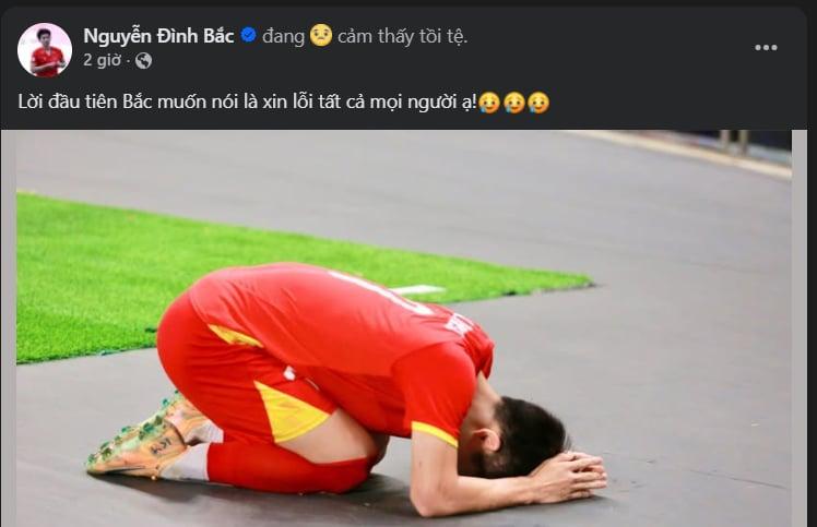 Theo tờ 163 (Trung Quốc), sau trận thua đậm khiến U23 Việt Nam lỡ hẹn chung kết, Nguyễn Đình Bắc, cầu thủ vào sân từ ghế dự bị, đã đăng tải lời xin lỗi người hâm mộ trên trang cá nhân. Trong bài viết, tiền đạo sinh năm 2004 bày tỏ sự tiếc nuối sâu sắc, đồng thời gửi lời xin lỗi tới các CĐV vì không thể cùng đội tuyển hoàn thành mục tiêu tiến vào trận đấu cuối cùng của giải.