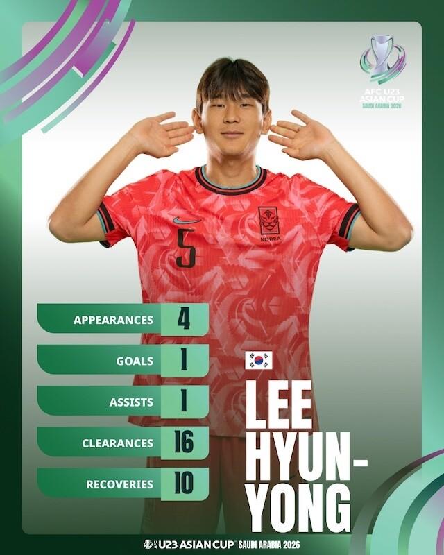 Ở chiều ngược lại, Hàn Quốc cũng sở hữu một nhân tố được kỳ vọng sẽ khóa chặt sức sáng tạo của đối thủ: trung vệ Lee Hyun-yong. Là mắt xích quan trọng trong hành trình vào bán kết, Lee không chỉ chắc chắn ở khâu phòng ngự mà còn đóng góp trực tiếp vào mặt trận tấn công, khi ghi bàn ở vòng bảng gặp U23 Lebanon và kiến tạo cho Baek Ga-on lập siêu phẩm mở tỷ số trước U23 Australia ở tứ kết.