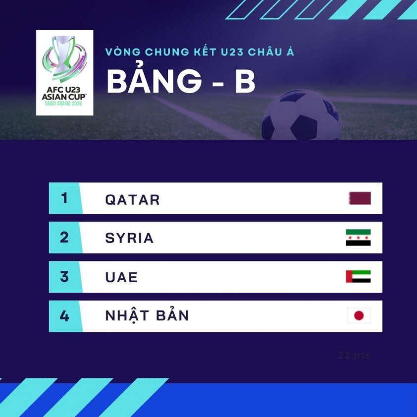 Tại VCK U23 châu Á 2026, U23 Nhật Bản nằm ở bảng B cùng U23 Syria, U23 UAE và U23 Qatar. Đội bóng xứ Mặt trời mọc sẽ ra quân gặp U23 Syria vào ngày 7/1, trước khi lần lượt đối đầu U23 UAE ngày 10/1 và U23 Qatar ngày 13/1, với mục tiêu khẳng định vị thế ứng viên hàng đầu cho ngôi vô địch.