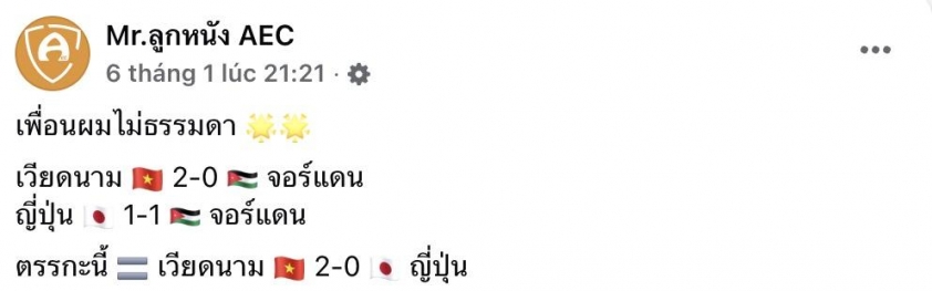 Chiến thắng này của Việt Nam không chỉ tạo ra dư chấn tại Jordan mà còn khiến cộng đồng mạng Thái Lan dậy sóng. Một fanpage bóng đá lớn của xứ Chùa Vàng đã đưa ra một phép so sánh mang tính "bắc cầu" đầy thú vị nhưng cũng đầy ẩn ý: "U23 Việt Nam thắng Jordan 2-0, trong khi Jordan lại hòa được Nhật Bản. Vậy theo logic này, Việt Nam hoàn toàn có thể thắng Nhật Bản 2-0".