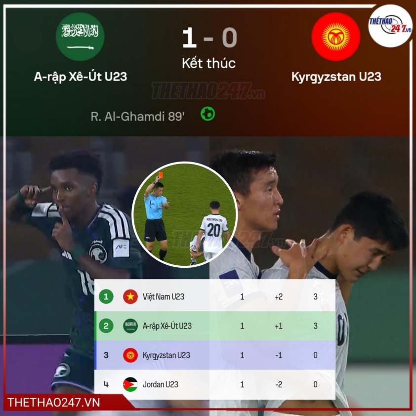 Dù được chơi trên sân nhà và áp đảo hoàn toàn đối thủ, U23 Ả Rập Xê Út đã phải trải qua 90 phút vô cùng nhọc nhằn mới có thể vượt qua U23 Kyrgyzstan với tỷ số tối thiểu 1-0. Điểm nhấn lớn nhất của trận đấu chính là sự tỏa sáng đúng lúc của Rakan Al Ghamdi – ngôi sao đang là đồng đội sát cánh cùng huyền thoại Cristiano Ronaldo tại câu lạc bộ Al Nassr.