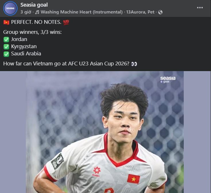Mới đây, fanpage Seasia Goal đã đăng tải một bài đăng nói về việc U23 Việt Nam đã hoàn thành chiến tích toàn thắng tại vòng bảng. Trong bài đăng đã khen ngợi các học trò của HLV Kim Sang Sik đã có một màn trình diễn "Hoàn hảo, không vết xước". Nhưng cùng với đó, trang này cũng đồng thời đặt ra câu hỏi: "Liệu Việt Nam sẽ đi được bao xa tại AFC U23 Asian Cup 2026?".