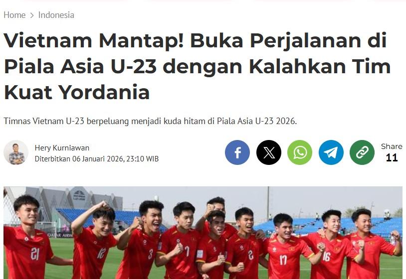 Tờ Bola của Indonesia mới đây đã có bài viết về trận thắng mở màn của thầy trò HLV Kim Sang Sik tại vòng chung kết U23 châu Á.