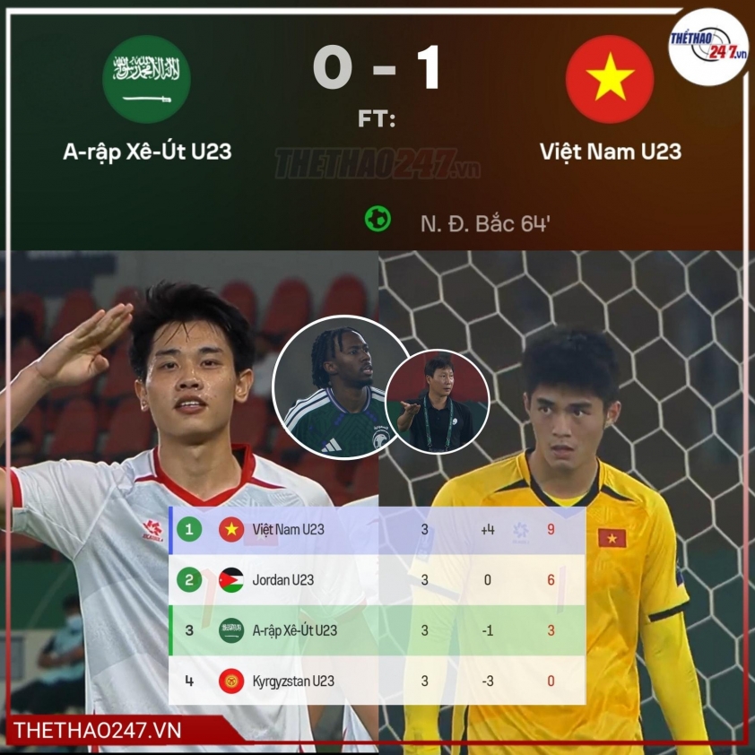 Trong khi đó đây là lần đầu U23 Việt Nam kết thúc vòng bảng U23 châu Á với 9 điểm tuyệt đối. Thành tích này không chỉ phản ánh sự ổn định và hiệu quả trong lối chơi của thầy trò HLV Kim Sang-sik, mà còn cho thấy vị thế ngày càng rõ nét của U23 Việt Nam trên bản đồ bóng đá trẻ châu lục, khi sánh vai cùng một trong những nền bóng đá hàng đầu châu Á.