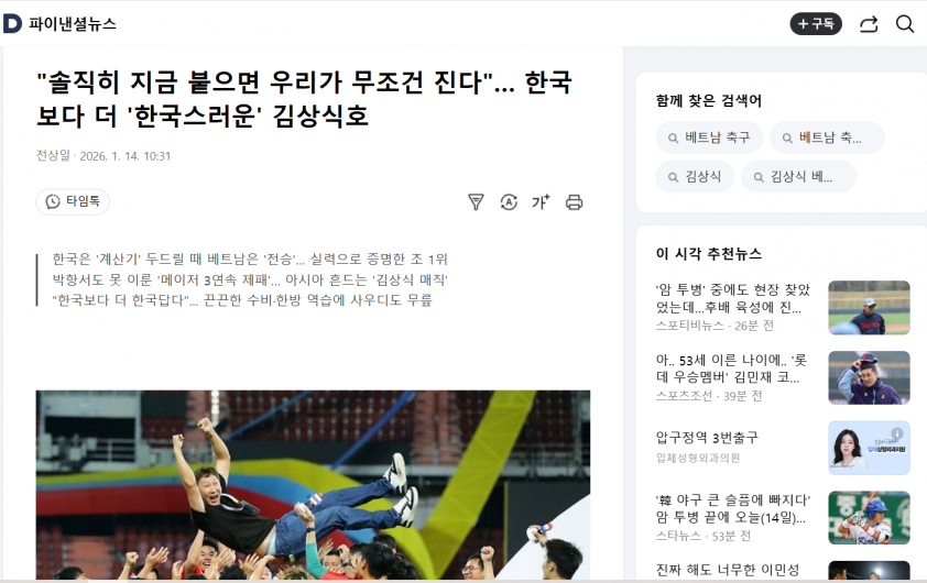 Tờ Financial News của Hàn Quốc cay đắng bình luận: “Ít ai ngờ Việt Nam lại mạnh đến vậy. Và càng không ai nghĩ Hàn Quốc lại sa sút đến mức này. Thành công của Kim Sang-sik vừa mang lại tự hào, vừa để lại dư vị chua chát cho người hâm mộ Hàn Quốc: năng lực của HLV Hàn Quốc đang nở rộ trên đất Việt Nam, trong khi chính bóng đá Hàn Quốc lại trở nên khô cằn”.