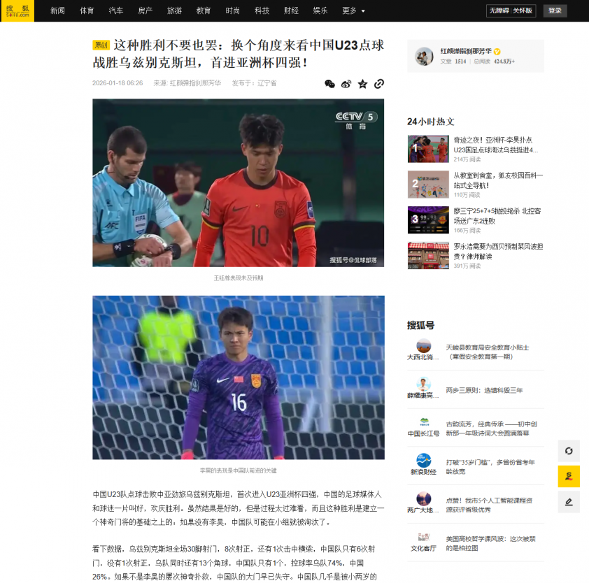 Sau chiến thắng 4-2 trên chấm luân lưu trước U23 Uzbekistan, một bài báo trên Sohu đã bình luận: “Chiến thắng kiểu này thà không có còn hơn”.