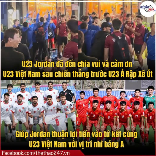 Các thành viên của U23 Jordan đã trực tiếp đến cảm ơn U23 Việt Nam sau khi một tay giúp đại diện của Tây Á giành vé vào tứ kết U23 châu Á 2026.