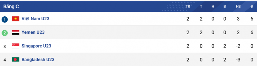 Trận đấu giữa U23 Việt Nam và U23 Yemen ở lượt cuối bảng C vòng loại U23 châu Á 2026 sẽ mang tính chất then chốt trong cuộc đua giành ngôi đầu. Sau hai lượt trận, cả hai đội đều toàn thắng và cùng có 6 điểm, tuy nhiên U23 Việt Nam đang chiếm ưu thế nhờ hiệu số bàn thắng bại vượt trội (+3 so với +2). Điều này đồng nghĩa với việc chỉ cần một kết quả hòa, thầy trò HLV Kim Sang Sik sẽ giữ vững ngôi đầu bảng.
