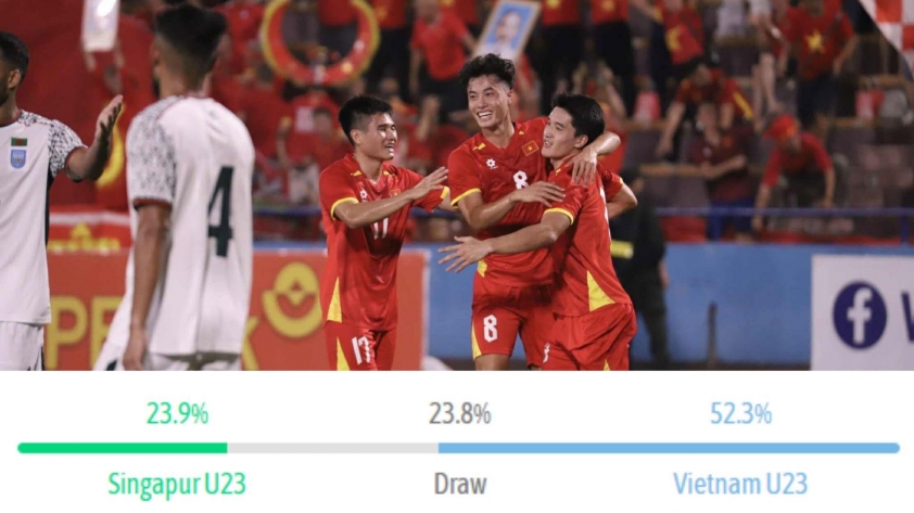 Điều này đã được chuyên trang thống kê Besoccer xác nhận. Cụ thể, Besoccer dự đoán rằng U23 Việt Nam sẽ có tới 52,3% cơ hội giành chiến thắng, nhiều hơn gấp đôi so với U23 Singapore (23,9%). Trong khi đó, chỉ có 23,8% trong việc hai đội sẽ kết thúc trận đấu với tỷ số hòa.