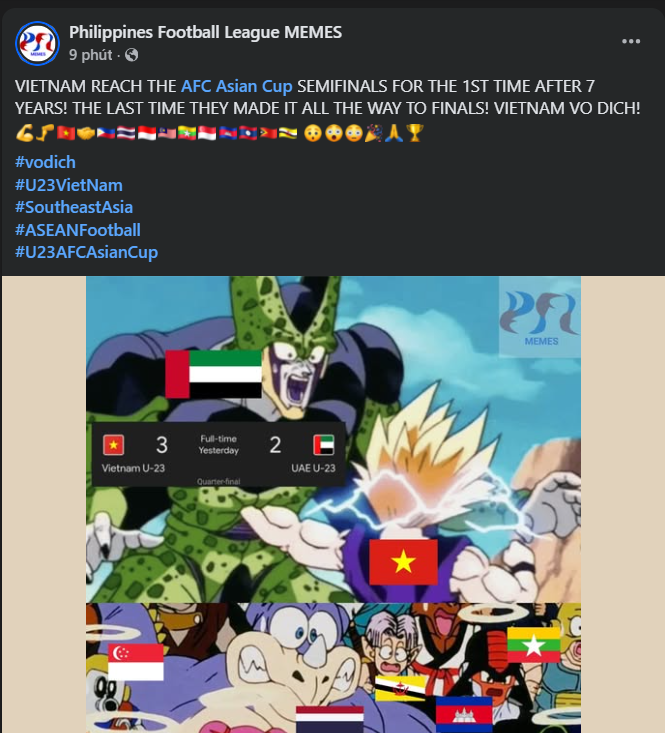 Trang Fanpage Philippines Football League MEMES đã có bài đăng đầy bất ngờ dành cho U23 Việt Nam sau chiến tích lọt vào bán kết U23 châu Á 2026.