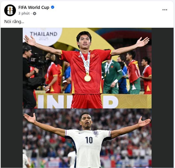 Fanpage chính thức của FIFA đăng tải hình ảnh ăn mừng bàn thắng ngạo nghễ của Văn Thuận khi ấn định thắng lợi cho U23 Việt Nam.