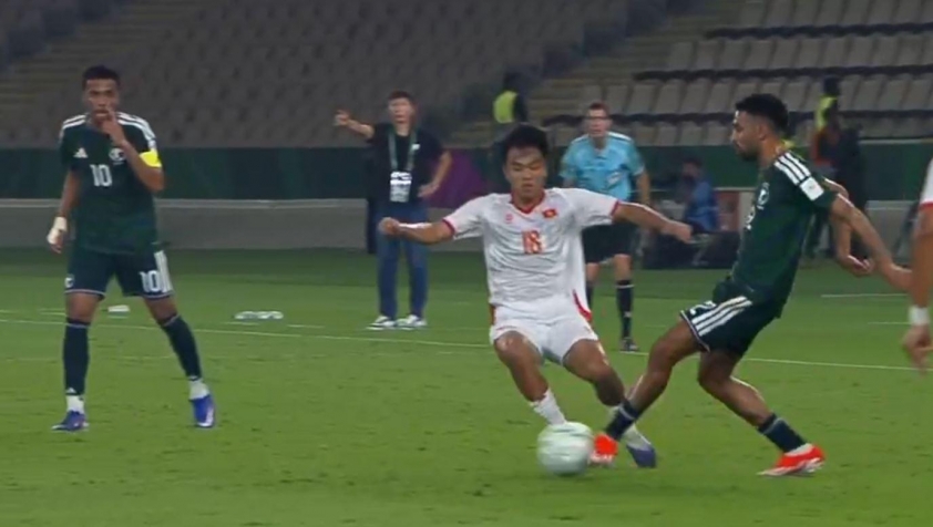 Công Phương có pha vào bóng cả 2 chân khá nguy hiểm với cầu thủ Ả Rập Xê Út. Rất may anh chỉ phải nhận thẻ vàng.