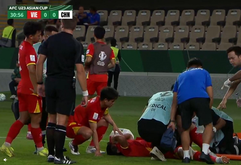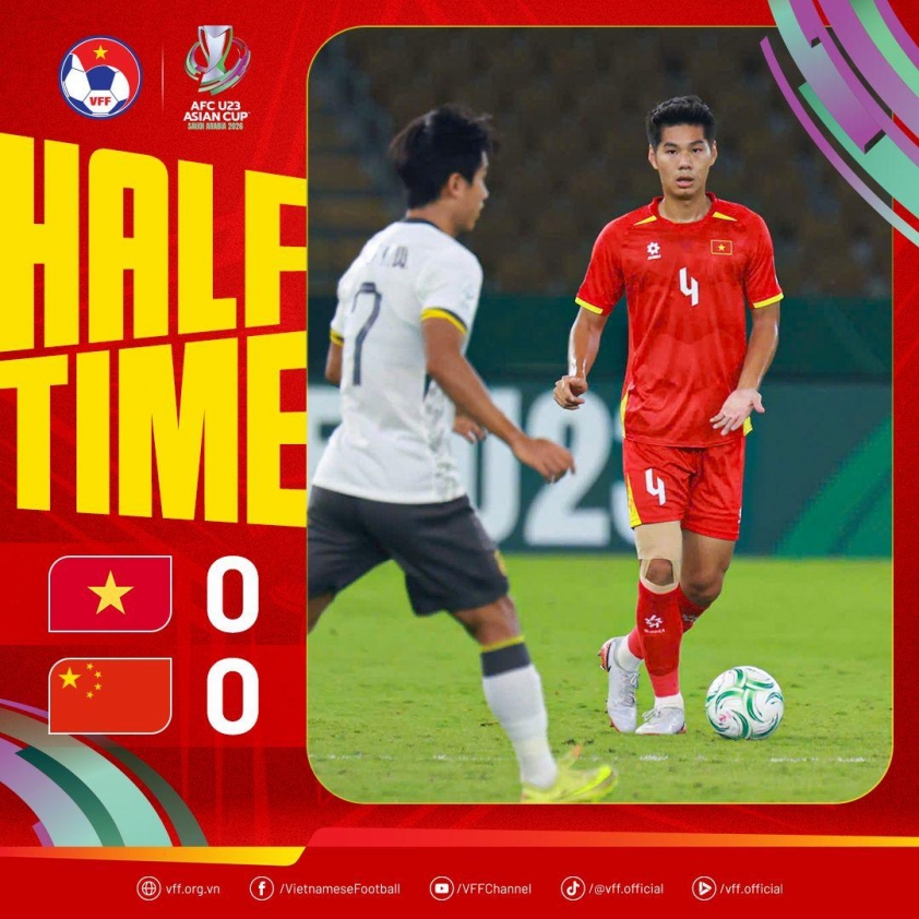 Trái ngược với lối đá phòng ngự lầm lì ở các trận trước, U23 Trung Quốc nhập cuộc đầy tự tin và chủ động cầm bóng, khiến hàng thủ Việt Nam lúng túng. Phút 32, biến cố lớn xảy ra khi trụ cột Hiểu Minh gặp chấn thương nặng phải rời sân bằng cáng, buộc Đức Anh vào thay thế. Điểm sáng duy nhất của Việt Nam là cú sút phạt đẳng cấp của Khuất Văn Khang ở phút 25, nhưng thủ môn Li Hao một lần nữa cho thấy vì sao anh là "người nhện" của giải đấu với pha bay người cứu thua xuất thần.