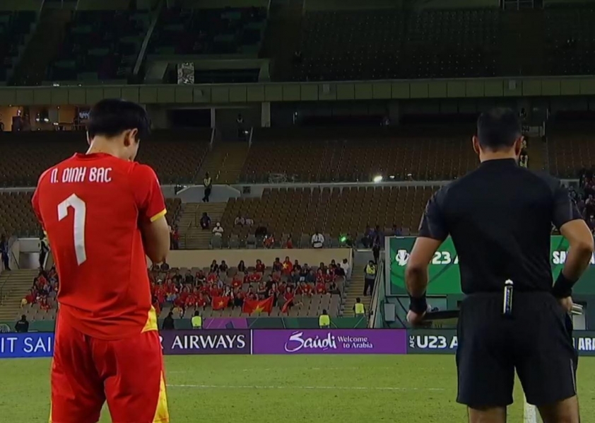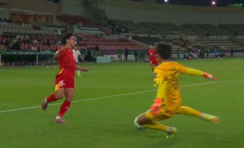 Lưới của U23 Việt Nam rung lên nhưng sau khi check VAR bàn thắng đã bị hủy vì lỗi việt vị. Tuy nhiên trước đó Lý Đức đã nhận thẻ đỏ.