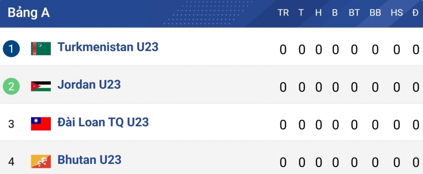 Bảng A vòng loại U23 Asian Cup 2026 quy tụ Jordan, Turkmenistan, Chinese Taipei và Bhutan, nơi đội chủ nhà được đánh giá cao nhất trong cuộc đua giành vé đến Saudi Arabia.