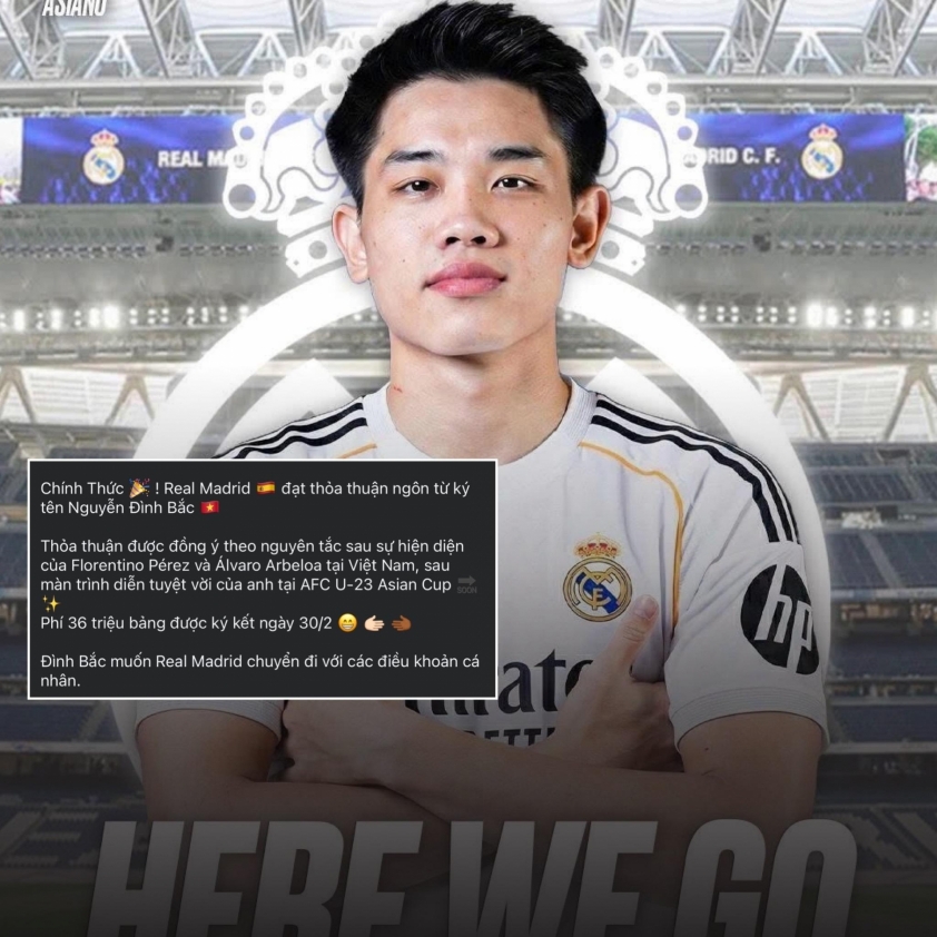Theo Idoojung, truyền thông Việt Nam gần đây còn tạo thêm “cơn sốt” khi đăng tải hình ảnh Đình Bắc mặc áo Real Madrid kèm thông tin mang tính đồn đoán về một thỏa thuận sơ bộ giữa hai bên. Dù nhiều chi tiết được cho là mang tính biểu tượng và chưa có xác nhận chính thức, nhưng thông tin này vẫn nhanh chóng lan truyền, thu hút hàng loạt bình luận từ người hâm mộ.