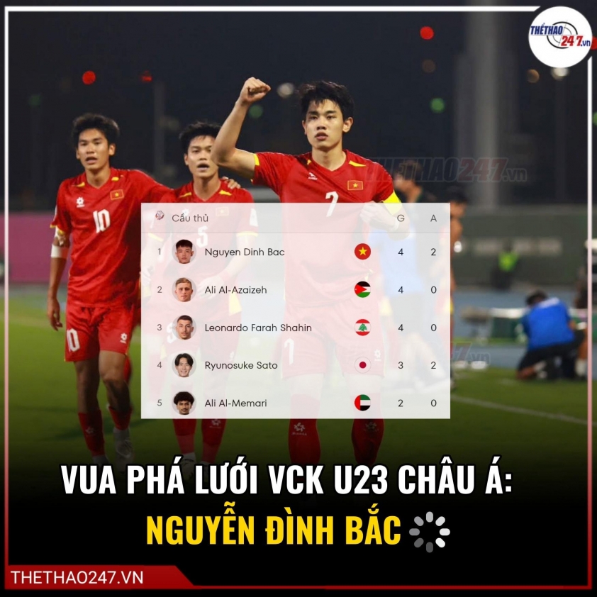 Thành tích này càng thêm sức nặng khi Đình Bắc đã có một kỳ giải bùng nổ về mặt chuyên môn. Tiền đạo của U23 Việt Nam ghi 4 bàn thắng, đóng góp 2 pha kiến tạo, qua đó vươn lên giành danh hiệu Vua phá lưới U23 châu Á. Không chỉ nổi bật ở khả năng săn bàn, Đình Bắc còn gây ấn tượng mạnh với tốc độ, những pha di chuyển thông minh cùng tinh thần thi đấu giàu năng lượng, trở thành mắt xích quan trọng trong hành trình đáng nhớ của U23 Việt Nam.