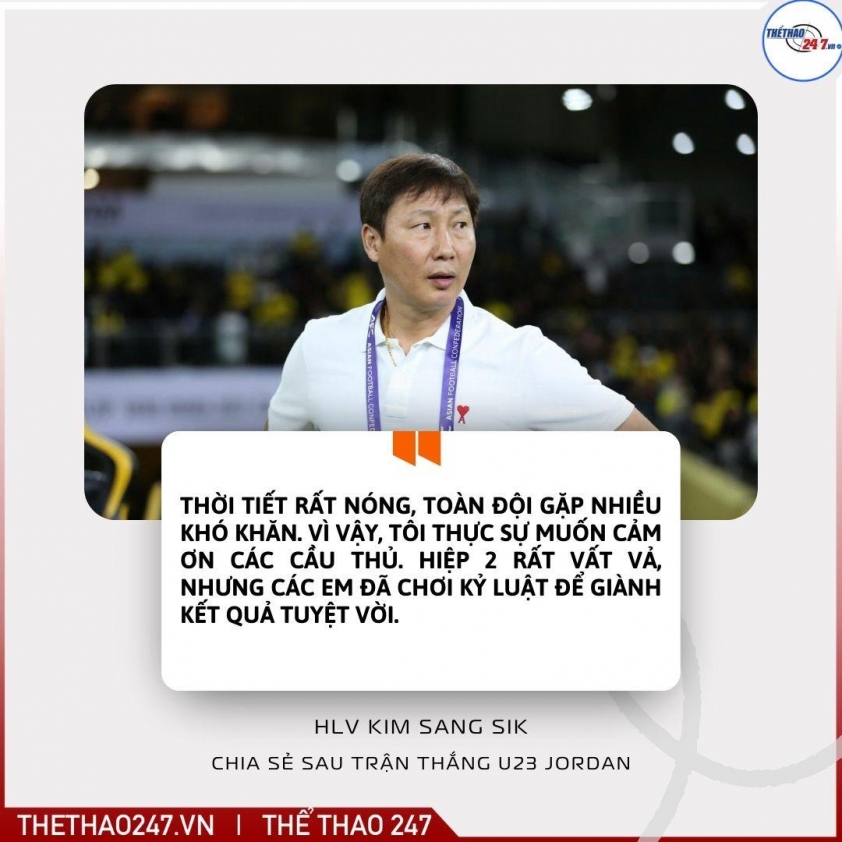 Chiến thắng 2-0 trước U23 Jordan không chỉ giúp U23 Việt Nam tạo lợi thế lớn tại VCK U23 châu Á, mà còn khiến HLV Kim Sang Sik dâng trào cảm xúc vì tinh thần quả cảm của các học trò.
