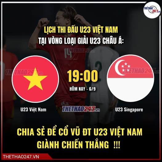 (Lịch thi đấu bóng đá) Hôm nay (6/9), U23 Việt Nam vs U23 Singapore trong trận đấu thuộc lượt trận thứ 2 của vòng loại U23 châu Á 2026.
