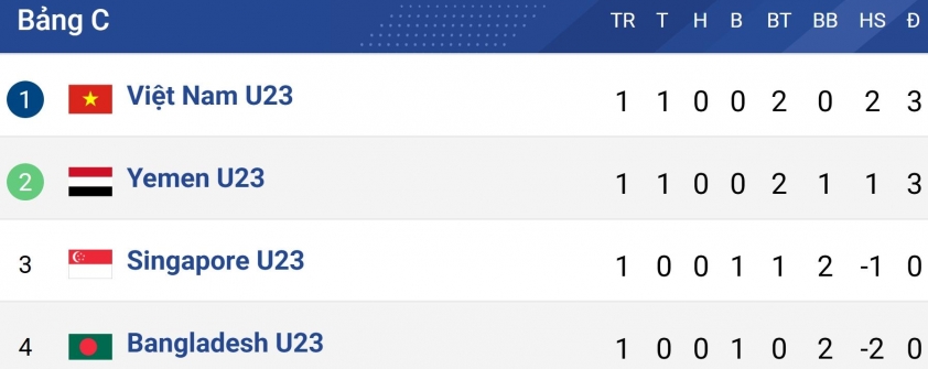 U23 Việt Nam đã có màn khởi đầu suôn sẻ khi vượt qua U23 Bangladesh với tỷ số 2-0. Các pha lập công của Ngọc Mỹ và Viktor Lê giúp đội chủ nhà giành trọn 3 điểm, qua đó tạm thời vươn lên dẫn đầu bảng C nhờ hiệu số tốt hơn so với Yemen.