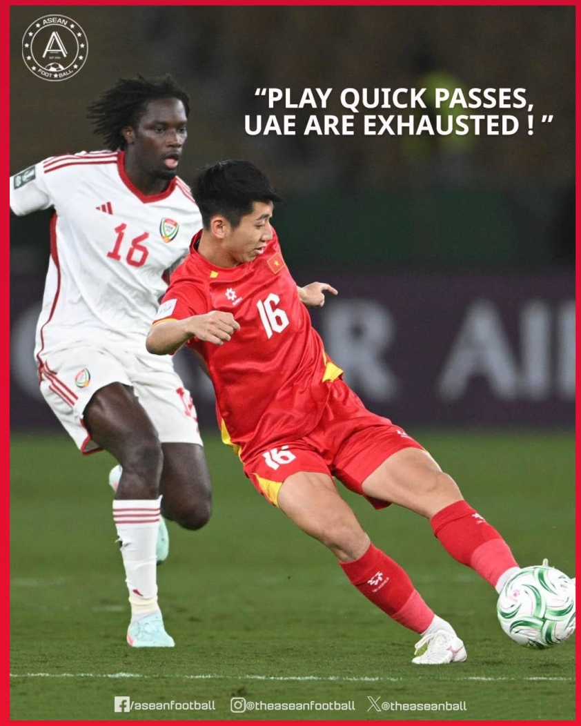 "Đá một chạm đi, U23 UAE kiệt sức rồi. Tiếng hô ấy vang vọng từ ban huấn luyện đội tuyển U23 Việt Nam ở phút thứ 105 trong trận tứ kết gặp UAE tại Giải vô địch U23 châu Á 2026," AFC viết. "Nó thể hiện thể lực đáng kinh ngạc của các cầu thủ trẻ Việt Nam trước một đối thủ đến từ Tây Á nổi tiếng về sức mạnh và thể lực, với một số cầu thủ gốc Phi."