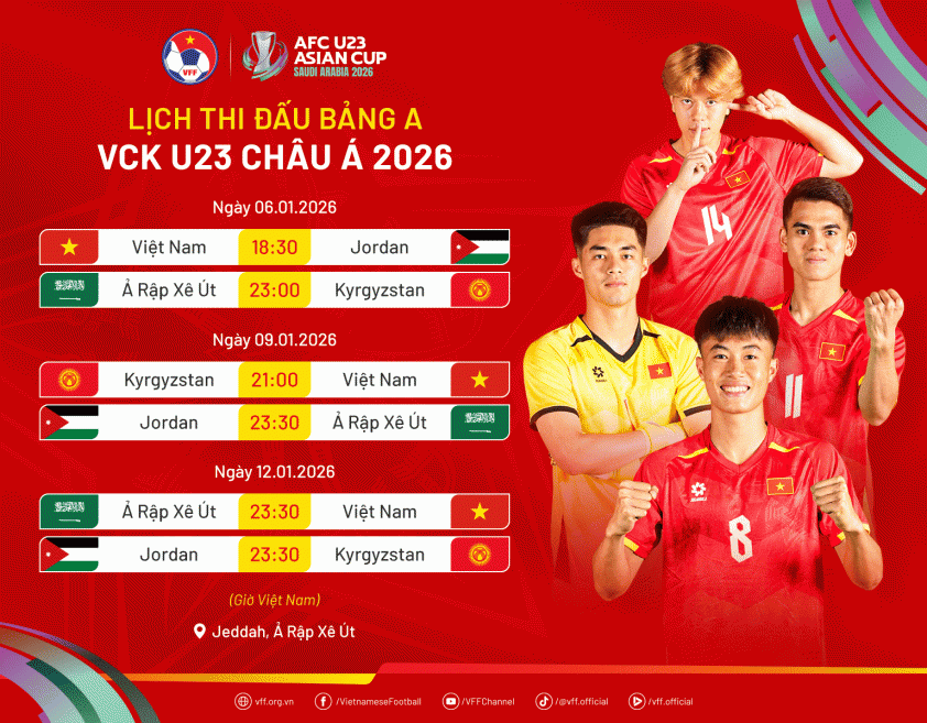 Hôm nay 2/1, U23 Việt Nam sẽ lên đường sang Ả Rập Xê Út, chuẩn bị cho các trận đấu tại VCK U23 châu Á 2026.