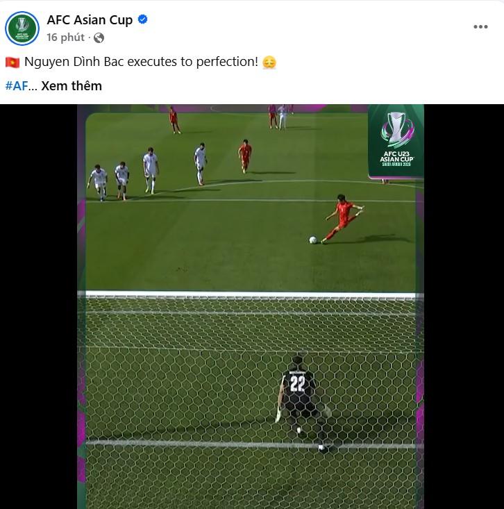 Pha dứt điểm chuẩn xác của tiền đạo sinh năm 2004 không chỉ giúp U23 Việt Nam khai thông thế bế tắc mà còn tạo đà tâm lý thuận lợi cho thầy trò HLV Kim Sang Sik trong phần còn lại của trận đấu. Trên trang chính thức, AFC đã đăng tải hình ảnh tình huống này kèm dòng trạng thái vinh danh: “Nguyễn Đình Bắc dứt điểm hoàn hảo”, qua đó thể hiện sự đánh giá cao với khả năng xử lý của cầu thủ trẻ Việt Nam.
