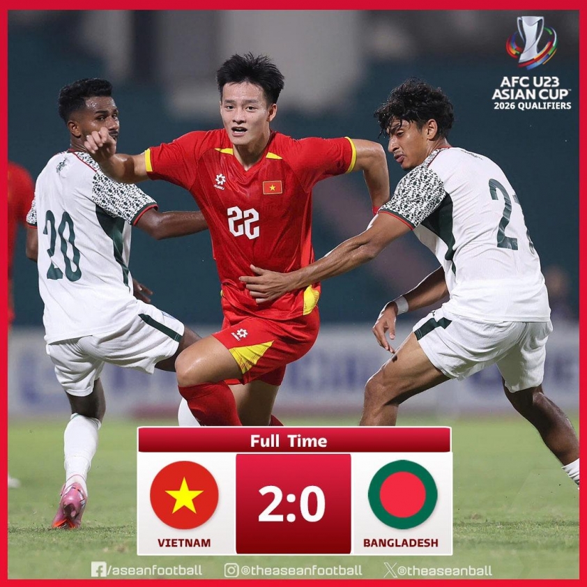 Trận đấu mở màn vòng loại U23 châu Á 2026 diễn ra vào lúc 19h tại sân Việt Trì (Phú Thọ), và U23 Việt Nam đã giành chiến thắng quan trọng với tỷ số 2-0 trước U23 Bangladesh. Những bàn thắng của Ngọc Mỹ (phút 15) và Viktor Lê (phút 83) giúp đội tuyển Việt Nam có được 3 điểm đầu tiên, khởi đầu mạnh mẽ cho hành trình vòng loại.