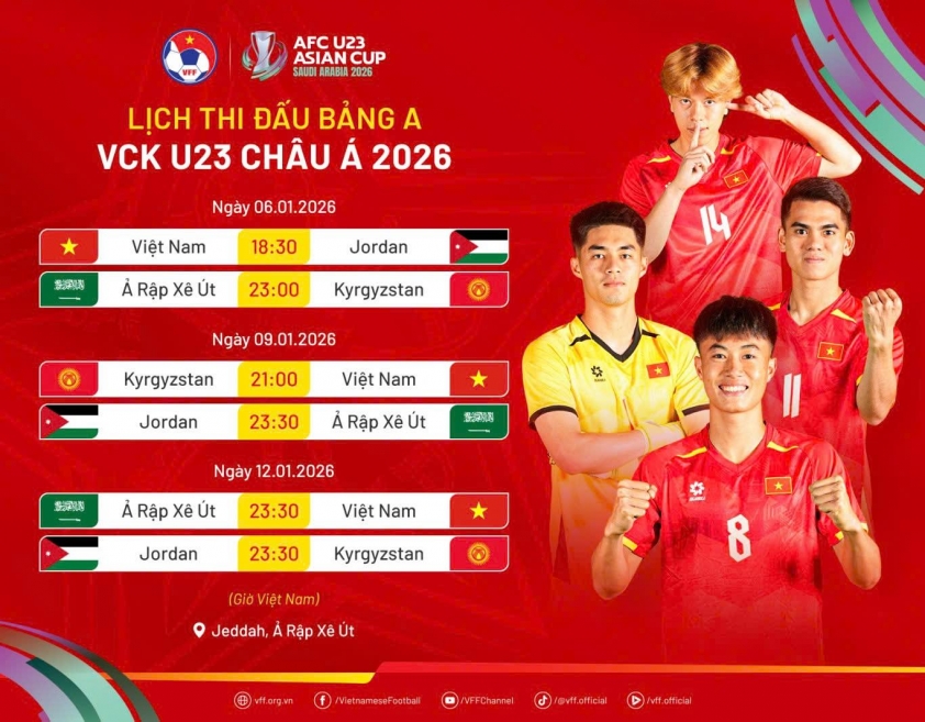 Trận mở màn giữa U23 Việt Nam và U23 Jordan vào ngày 6/1 được xem là cuộc đối đầu then chốt của bảng A nơi kết quả có thể định đoạt tấm vé vào tứ kết. Một chiến thắng sẽ giúp thầy trò HLV Việt Nam tạo lợi thế lớn trong hành trình chinh phục giấc mơ châu Á.