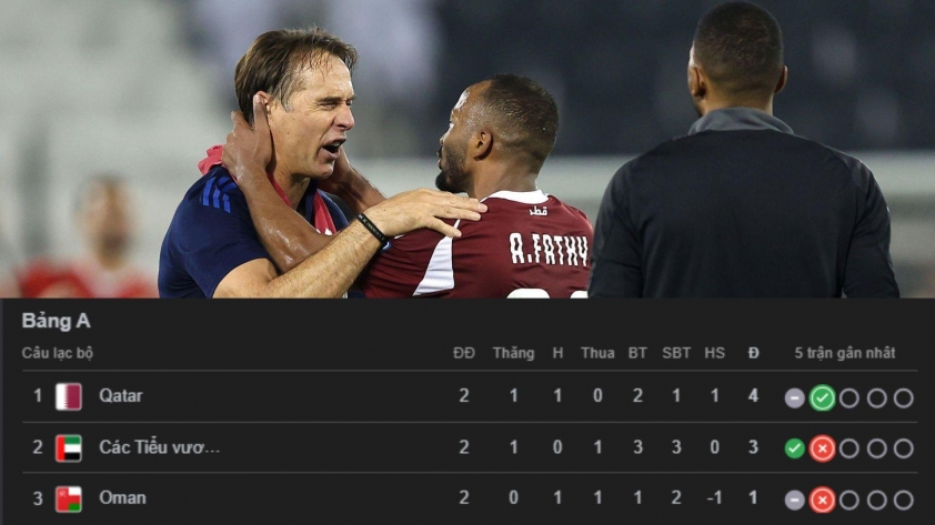 Ở bảng A, ĐT Qatar đã xuất sắc tận dụng lợi thế sân nhà để có được chiến thắng đầy quan trọng trước UAE. Với việc buộc phải giành ba điểm để có được ngôi đầu, đội chủ nhà World Cup 2022 lại có phần lép vế so với đội khách. Dù vậy, ĐT Qatar lại bất ngờ có được hai bàn dẫn trước do công của Boualem Khoukhi và Pedro Miguel Correia. Trong khi đó, bàn gỡ của Sultan Adill Alamiri là không đủ để giúp UAE có điểm, qua đó chấp nhận thất bại 1-2.