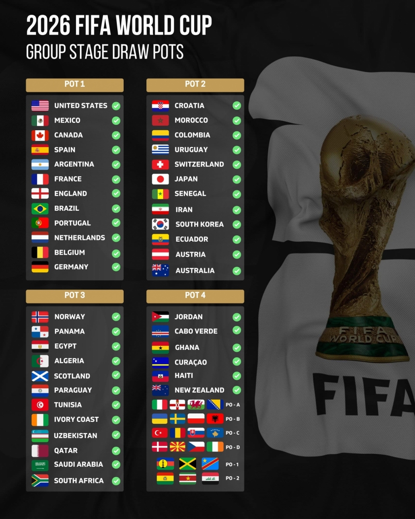 World Cup 2026 cũng đánh dấu một bước ngoặt lịch sử khi lần đầu tiên có 48 đội tuyển tham dự, chia thành 12 bảng, mỗi bảng 4 đội. Các đội tuyển sẽ được phân vào bốn nhóm hạt giống dựa trên thứ hạng FIFA hiện tại để tiến hành bốc thăm.
