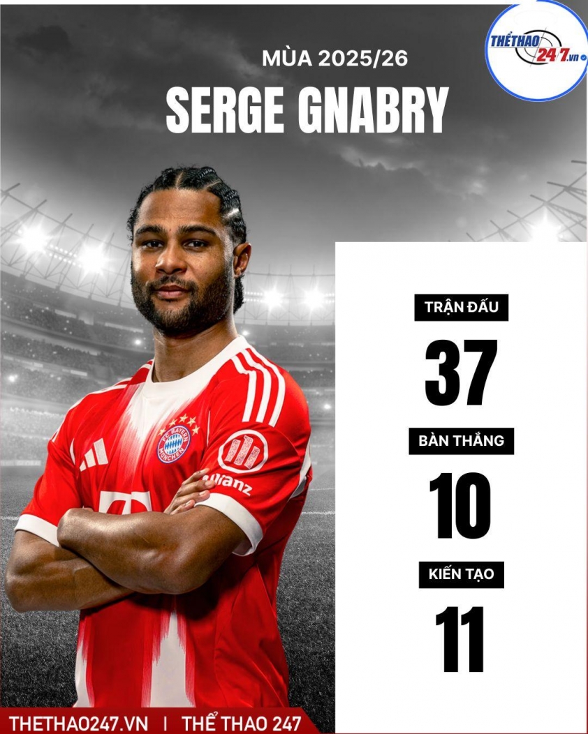 Không chỉ ảnh hưởng đến đội tuyển quốc gia, chấn thương này còn khiến Gnabry sớm khép lại mùa giải cấp CLB. Anh sẽ vắng mặt trong giai đoạn then chốt của Bayern tại Bundesliga, Cúp Quốc gia Đức và Champions League. Đáng chú ý, “Hùm xám” vừa giành chức vô địch quốc nội, đồng thời đã lọt vào bán kết ở hai đấu trường còn lại.