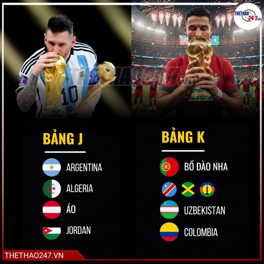 Tại bảng K, Bồ Đào Nha của Ronaldo sẽ gặp đối thủ "cứng cựa" tại Nam Mỹ là Colombia - Á quân Copa America 2024. Dẫu vậy, việc gặp Uzbekistan là tương đối dễ thở đối với CR7, trong khi 3 đội chưa xác định là CH Congo hoặc Jamaica/New Caledonia cũng không phải là đối trọng của Bồ Đào Nha.