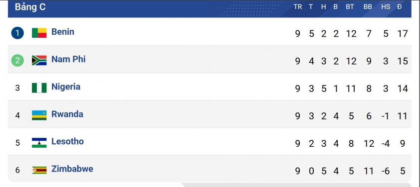 Hiện tại, Benin đang dẫn đầu bảng C với 17 điểm sau 9 trận, xếp sau là Nam Phi (15 điểm) và Nigeria (14 điểm). Tuy nhiên, Nigeria và Benin sẽ đối đầu trực tiếp ở lượt trận cuối, và đây chính là trận đấu có thể định đoạt tất cả.