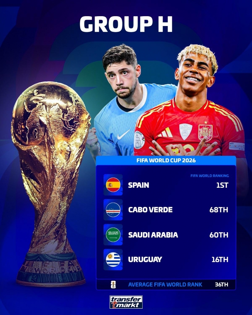 Uruguay dù đang trong giai đoạn chuyển giao, vẫn là cái tên đầy khó chịu với phong cách thi đấu máu lửa.Ả Rập Xê Út từng gây địa chấn khi đánh bại Argentina năm 2022, còn Cape Verde (dù bị xem là yếu nhất bảng) vẫn có thể gây bất ngờ nhờ lối đá giàu thể lực.