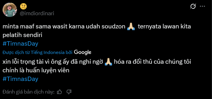 “Phải xin lỗi trọng tài vì đã nghi ngờ ông ấy. Hóa ra đối thủ thật sự của chúng ta lại là HLV của chính mình”, một tài khoản viết.