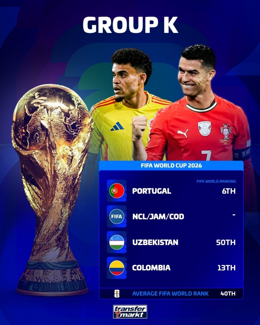Bảng K World Cup 2026 được xem là một trong những bảng đấu hấp dẫn khi hội tụ ba nền bóng đá khác biệt. Bồ Đào Nha với dàn sao hàng đầu châu Âu như Cristiano Ronaldo, Bruno Fernandes là ứng viên sáng giá cho ngôi đầu bảng. Colombia sở hữu phong cách Nam Mỹ phóng khoáng, giàu kỹ thuật và luôn tiềm ẩn khả năng bùng nổ. Trong khi đó, Uzbekistan, đại diện mới của châu Á, sẽ phải thể hiện bản lĩnh và tinh thần chiến đấu để giành từng điểm số trong “bảng tử thần” này.