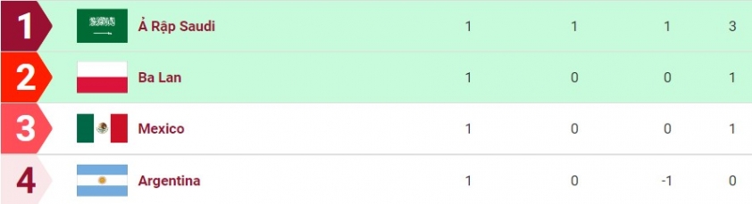 Ba Lan chính thức đánh bại Ả rập Xê út với tỉ số 2-0, qua đó vươn lên dẫn đầu bảng C. Trong khi đó, Ả rập Xê út tụt xuống đứng thứ 2 và còn cơ hội tự quyết tấm vé đi tiếp ở lượt cuối gặp Mexico.